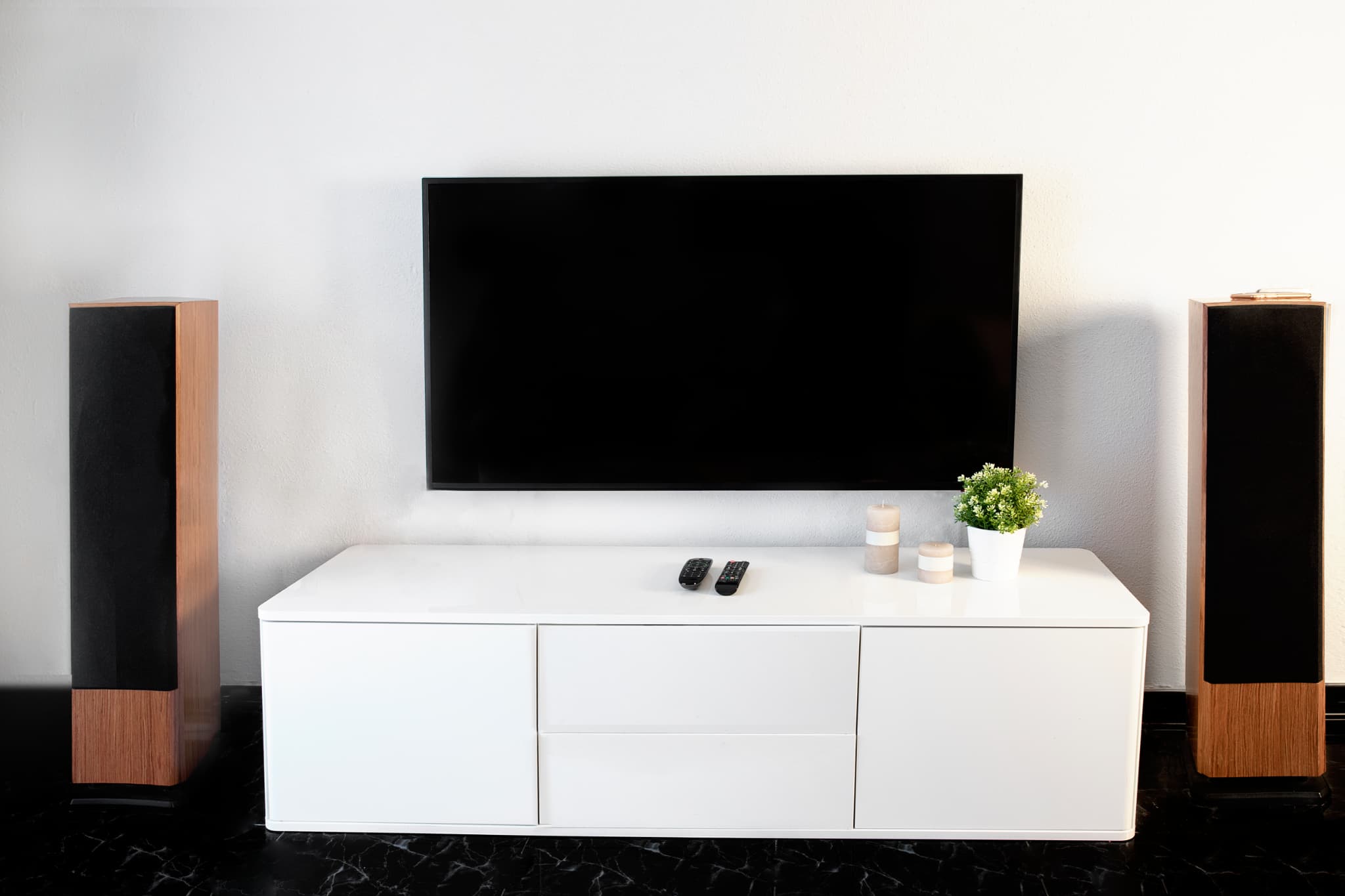 映画館のように、音が前から後ろ、横、さらに上からも聞こえるようにするために、いくつかのスピーカーを設置します。